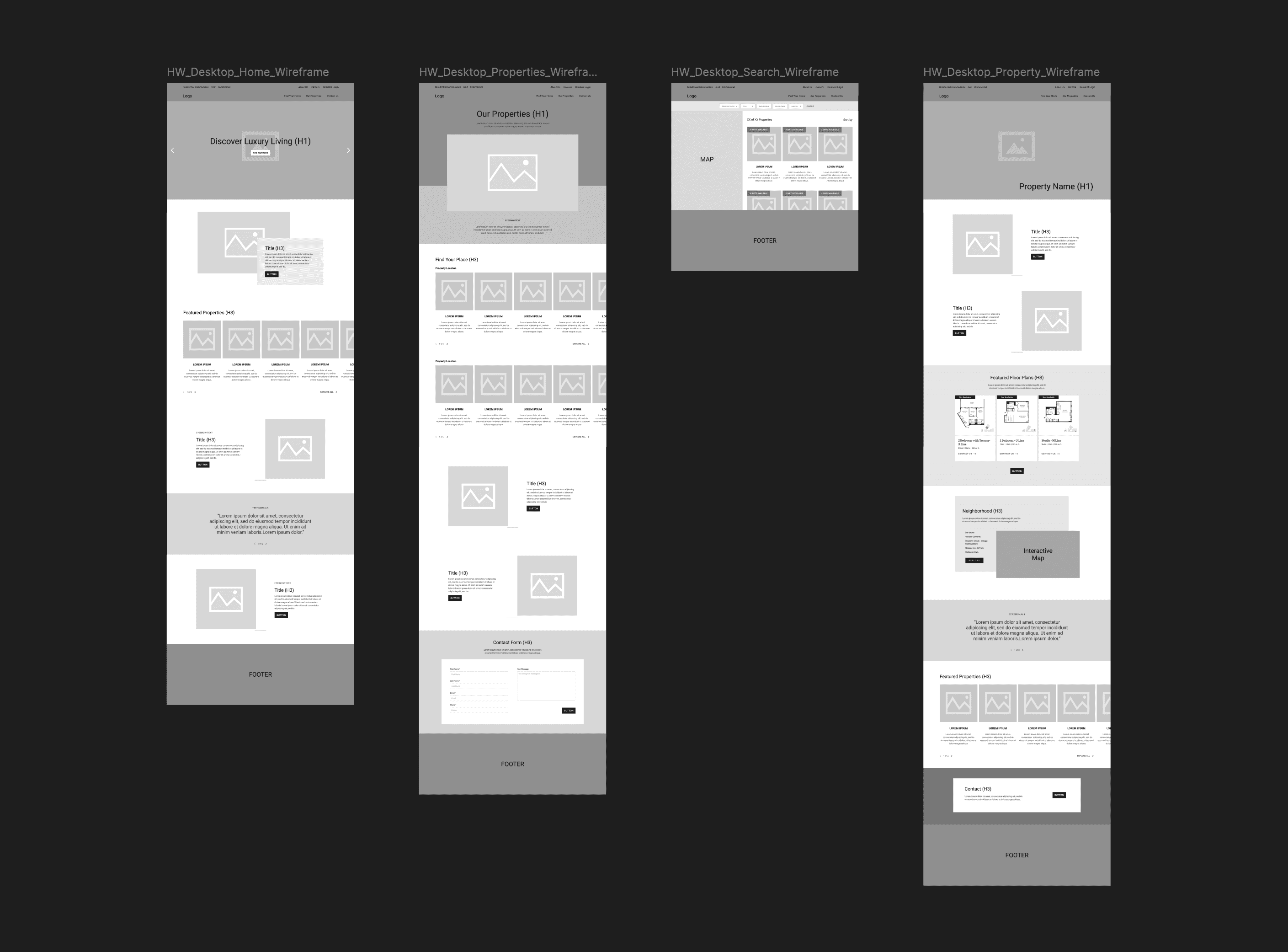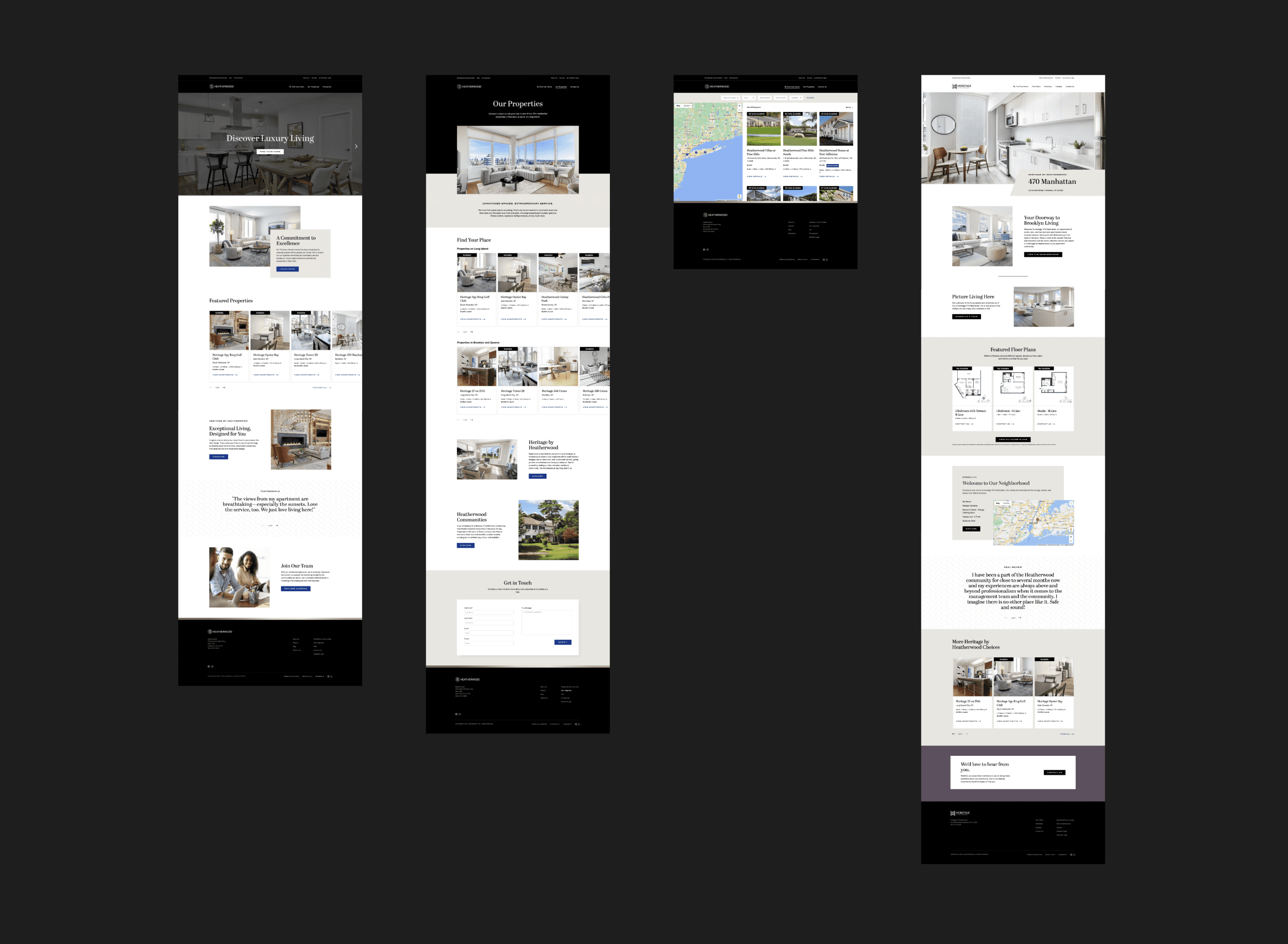 My team conducted a content audit of all website pages to identify which were essential. Together, we created a site map to visualize what was most important for users and to reorganize information to make the most sense. This step helped clarify how users would navigate between core sections—such as Property Search, listings, About, and Contact—and ensured that every page supported a clear purpose within the broader experience.